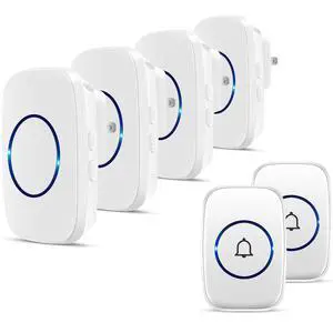 Wireless Doorbells, Plug-in, Battery Powered, Easy to Install, 1300 Ft Range, 60 Chime, LED Flash, Waterproof, Differentiate Various Doors, Silver, 2 Transmitter & 2 Receiver for Home, Office