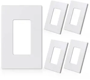 Metal Decorative Wall Plate, Electrical Outlet Covers, Light Switch Covers, Thick and Durable Mid Size 3.16'' x 4.92'' Switch Plate in Various Styles (Pure White, 1 Gang Duplex 4 PK)
