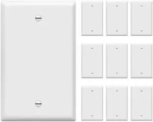 Mid-Size Blank Device Wall Plate, Midway Blank Outlet Covers, 1-Gang 4.88" x 3.11", Unbreakable Polycarbonate Thermoplastic, UL Listed, 8801M-W-10PCS, Gloss Finish, White (10 Pack)