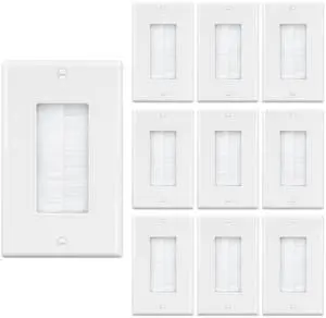 Brush Wall Plate (10 Pack), Cable Pass Through Insert for Wires, Single Gang Cable Access Strap, Wall Socket for HDTV, Home Theater Systems
