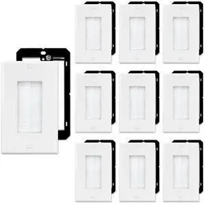 10 Pack Brush Wall Plate with Low Voltage Mounting Bracket, Cable Pass Through Wall Plate for Wires, Single Gang Cable Access Strap, Wall Socket - White