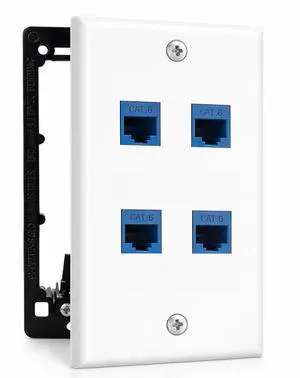 4 Port Ethernet Wall Plate, Cat 6, Wall Outlet, RJ45 Female to Female Keystone Jacks - White
