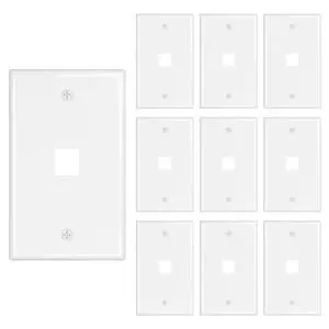 1-Port Keystone Wall Plate 10-Pack, Low Profile Ethernet Wall Plates for Keystone Jack, White