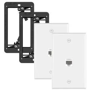 Ethernet Wall Plate (UL-Listed), 1-Port CAT6 Wall Plate and Jack, RJ45 Keystone Wall Outlet with Single Gang Low Voltage Mounting Bracket, White 2-Pack