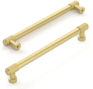 10 Pack Brushed Gold Knurled Cabinet Pulls 7 Inch(177.8mm) Hole Center Kitchen Cabinet Handles Drawer Pulls Cabinet Hardware ZH0034