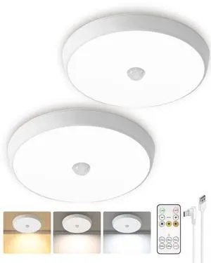 Motion Sensor Light Indoor, 2-Pack, 10000mAh, 7.1inch, 400LM, Remote Control, Dimmable, LED, Flush Mount, Wireless, Rechargeable, Battery Operated, Cordless, Ceiling Light, Closet Light, No Wiring- Part Number: EZL2421A