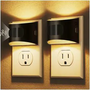 LED Night Light Plug in, Foldable Night Lights Plug into Wall with Dusk to Dawn Sensor, 2 Brightness Level, Ideal Nightlight for Bathroom, Hallway, Kitchen, 3000K Soft White, 2 Pack