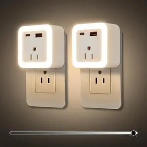 2 Pack Plug in Amber Night Light, Auto Dusk to Dawn, Soft Glow, Dimmable, Diffused Light, LED Lights for Bedroom, Kids, Bathroom, Sleep, Baby Nursery, Toddler, Hallway, Kitchen, Home Decor