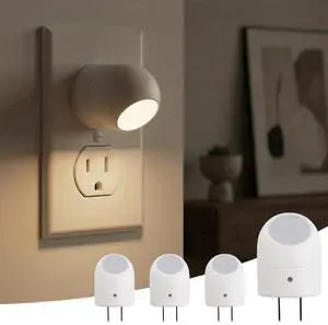 4-Pack LED Night Light Plug in with Adjustable 180° Swivel Head, Dusk to Dawn Auto On/Off, Daylight 5000K 100LM, for Kitchen Counter, Desk, Staircase, Hallway, BathroomNon-Dimmable