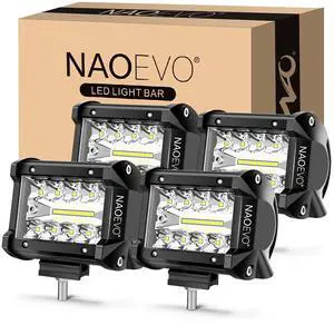 4 Inch LED Pod Lights, 240W 24,000LM LED Fog/Driving/Off Road Lights with Spot Flood Combo, Cube Pods for Truck Boat ATV UTV Pickup, 4 Pcs (White)