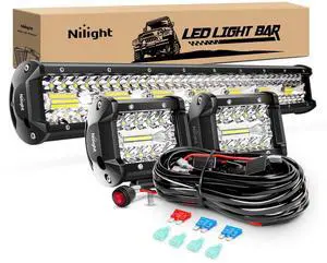 20Inch 420W Triple Row Spot Flood Combo Led Light Bar Work Driving Lamp 2Pcs 4Inch 60W Cube LED Pods Lights for Trucks with Off-Road Wiring Harness Kit-3 Leads