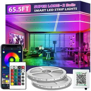 65.6 ft Led Lights for Bedroom, Bluetooth Smart APP Control 5050 RGB Color Changing Led Strip Lights with Remote Control and Power Adapter Led Lights for Room Kitchen Party Home Decoration