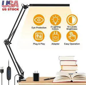 LED Desk Lamp Adjustable Swing Arm Lamp Eye-Caring Reading Desk Light with Clamp