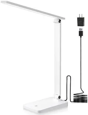 White crown LED Desk Lamp Dimmable Table Lamp Reading Lamp with USB Charging Port, 5 Lighting Modes, Sensitive Control, 30/60 Minutes Timer (White, First-Generation)