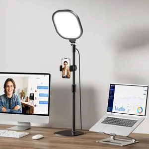 Ring Light with Stand for Zoom Meetings, 360° Rotate 10.5" Zoom Lighting for Computer Video Conference Light Desk Light, Full-Screen LED Lighting with Phone Holder for Live Streaming, Video Call