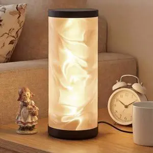 Prism Glow Table Lamp - 3 Color Temperatures USB Control Bedside Lamp, Dimmable Desk Light for Bedroom Living Room & Office, Modern Reading Lamp for Home Desk Decor (Water Ripple, Black)