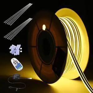 DELight 50FT Warm White Neon Rope Lights with 2" Plastic U Channel System 10PCS,Remote Control AC 110V Waterproof Cuttable DEL-D1M50W