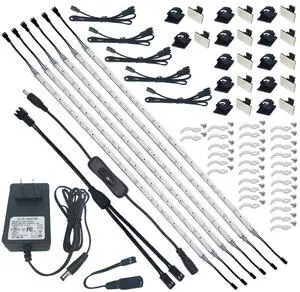 Under Cabinet Light, 6 PCS 20 Inches Flexible LED Strips with Power Adapter, 24W,1800 Lumen, Daylight 5000K. Suitable for Kitchen Cabinets, Counters, Under Shelf, Closets (6-Strip-5000K)