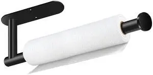 Paper Towel Holder, Self Adhesive or Drilling Paper Towel Holder Under Cabinet, Stainless Steel Black Paper Towel Holders Wall Mount for Kitchen, Bathroom, Sink, Pantry, Fridge