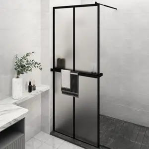 vidaXL Walk-in Shower Wall with Shelf Black 31.5"x76.8" ESG Glass&Aluminum