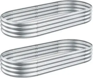 Land Guard 4×2×1.5ft Galvanized Raised Garden Bed Kit, Galvanized Planter Garden Boxes Outdoor, Oval Large Metal Raised Garden Bed for Vegetables (Classic Silver