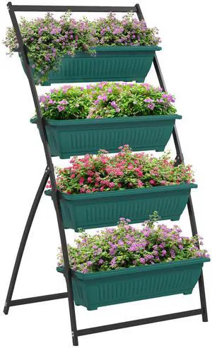 Vertical Garden Planter, Wooden 4 Tier Planter Box, Self-Draining with Non-Woven Fabric for Outdoor Flowers, Vegetables and Herbs, Orange