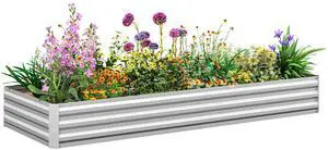 95" x 36" x 12" Galvanized Raised Garden Bed, Metal Elevated Planter Box, Easy DIY and Cleaning for Growing Flowers, Herbs, Silver