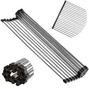 Roll Up Dish Drying Rack 17.7" x 16" - Over The Sink for Kitchen Counter, Foldable SUS304 Stainless Steel Dish Drying Rack for Cups, Utensils, Fruits, Vegetables