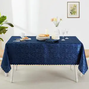 Wave Scroll Damask Jacquard Rectangle Deep Sea Blue Tablecloth 60" 120"Wipeable Table Cover for Dining Table, Buffet Parties and Camping
