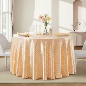 Yellow Polka Dot Satin Round Table Cloth 90 x 90 Inches,Yellow Round Tablecloth Stain Resistant Wrinkle Free Silkly Soft Table Cloths for Dining Room, Indoor and Outdoor Use