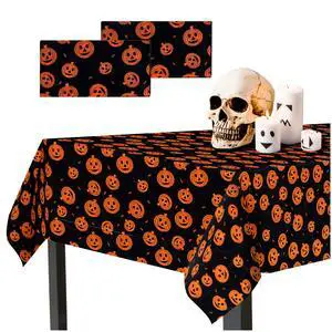 Halloween Tablecloth, 2-Pack Disposable Table Cloths, Pumpkins Plastic Covers, 54 x 108 Inches, Party Decorations