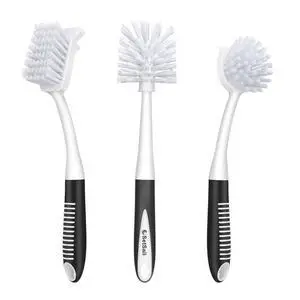 Dish Brush Set of 3 with Bottle Brush, Dish Scrub Brush with Long Handle Deep Cleaning Handle Brush with Scraper Tip for Kitchen Sink Dishes Bottle Cup Pot and Pans Tile Lines, Black