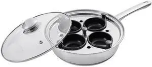 Egg Poacher Pan, 4-Cup Poached Egg Maker, Stainless Steel Poaching Pan and Frying Skillet, with 4 Nonsitck Detachable Large Cups, Lid, and Silicone Spatula, Compatible with Induction Stovetop