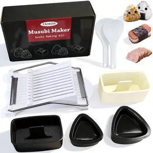 Musubi Press Mold, 4 Pcs Onigiri Mold Musubi Maker Kit with Luncheon Meat Slicer and 2 Rice Paddles - BPA-Free & Non-Stick, Easy to Clean