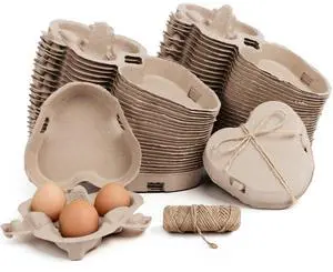 100Pcs Natural Paper Pulp Egg Cartons Blank Bulk Heart-shaped Chicken Cardboard Egg Tray Holder for Family Farm Market Storing-Suitable for Valentine's Day, Easter, Mother's Day