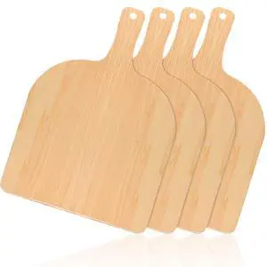 4 Pcs Wood Pizza Peel 12 Inch Wood Pizza Spatula Paddle Natural Cutting Board with Handle for Restaurant Baking Homemade Bread Cutting Fruit Vegetables Cheese
