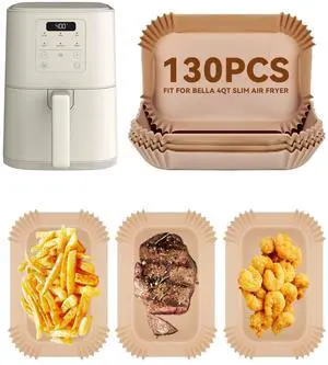 130PCs Air Fryer Paper Liners for bella 4Qt Slim Air Fryer(3.3lb Capacity), Rectangular Airfryer Disposable Parchment Paper Liner, Non-Stick Food-grade Air-Frier Accessories Rectangle Free of Bleach