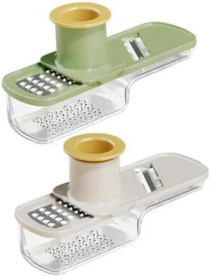 2 Pieces Mini Mandoline Slicer 3 in 1 - Ginger Garlic Grater, Vegetable Chopper with Container, Easy Grip Handheld Kitchen Tool, Safety Guard, for Camping Cooking and Picnic