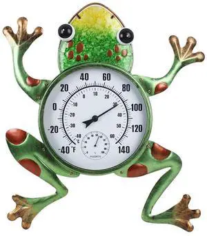 Outdoor Thermometer No Need Battery, Metal Outdoor Wall Thermometer Hygrometer Waterproof, Large Decorative Indoor Outdoor Thermometer for Patio, Room, Garden, Home(Green Frog)