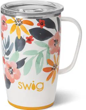 18oz Travel Mug, Insulated Tumbler with Handle and Lid, Cup Holder Friendly, Dishwasher Safe, Stainless Steel, Travel Coffee Cup (Honey Meadow)