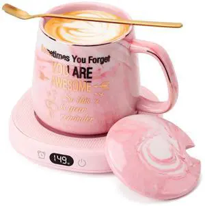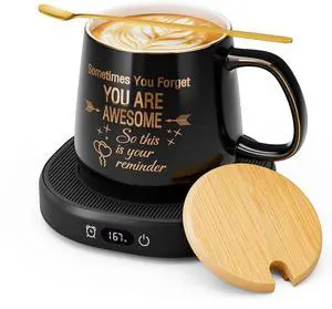 Coffee Mug Warmer & You are Awesome Mug Set, Electric Cup Warmer for Desk, Beverage Warmer with 4 Temperature Setting, 8-Hours Auto Shut Off