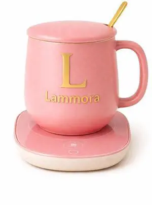 Self Heating Mug Set, 13oz Pink Coffee Mug Warmer for Desk with Ceramic Cup, Lid, Spoon & Gift Box, Electric Coffee Cup Warmer with Constant Temperature for Home Office, Gift for Coffee Lovers