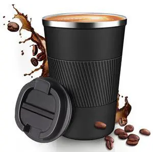 12OZ Travel Coffee Mug Insulated Coffee Cup with Spill Leak Proof Lid, Portable Stainless Steel Tumbler Reusable Hot and Cold Water Mug for Car, Daily, Camping-Black