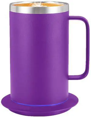 Self Heating Coffee Mug, Heated Coffee Mug with Smart Mug Warmer & Ergonomic Handle, Auto Heat to 131°F, USB-Powered Desk Warmer for Office Home Use, Ideal Coffee Lovers Gift (17oz Purple)