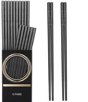 10 Pairs Fiberglass Chopsticks, Reusable Japanese Chinese Chop Sticks Dishwasher Safe, Non-Slip, 9 1/2 inches