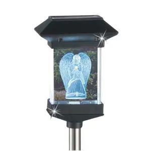 Jumbl 14" Solar LED Memorial Light 3D Guardian Angel Crystal Stake, Weather-Resistant Stainless Steel, Outdoor Grave Marker for Garden, Yard, or Cemetery Tribute Decoration
