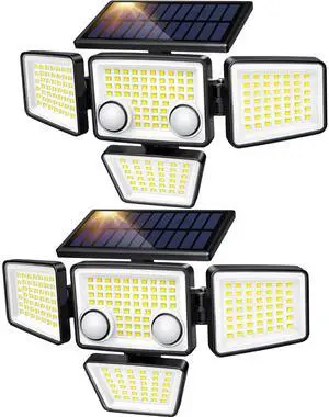 Solar Security Light Outdoor 302 LED 1200lmSolar-Powered Waterproof Wall-Mounted Flood Light w/PIR Motion Sensor, 3 Heads, IP65 Waterproof, 3 Modes (2 Packs)