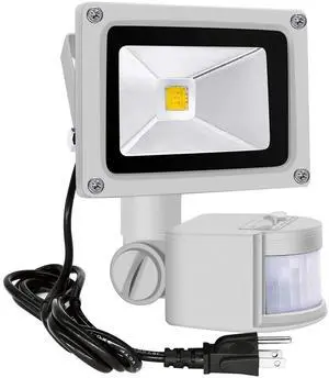Z Motion Sensor Flood Lights Outdoor,10W Induction LED Lamp, IP65 Waterproof Spotlight,3200K LED Sensor Light,Security Light with US 3-Plug (Warm White-Grey)