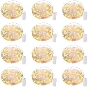 12 Pack LED Fairy Lights Battery Operated String Lights - 7ft 20LED Waterproof Silver Wire Firefly Starry Moon Lights for DIY Crafts Wedding Table Centerpieces Party Ramadan Decorations