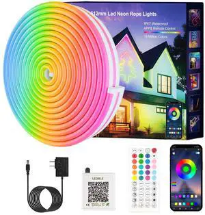 LED Neon Rope Lights, 13.1ft RGB LED Light Strip, 24V Music Sync App/Remote Control DIY Rope Light, IP67 Waterproof Gaming Neon Strip Lights for Bedroom Indoor Oudoor Décor